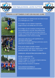 Nieuwe clinic van Voetbalschool Leon Hutten start 12 september 2021